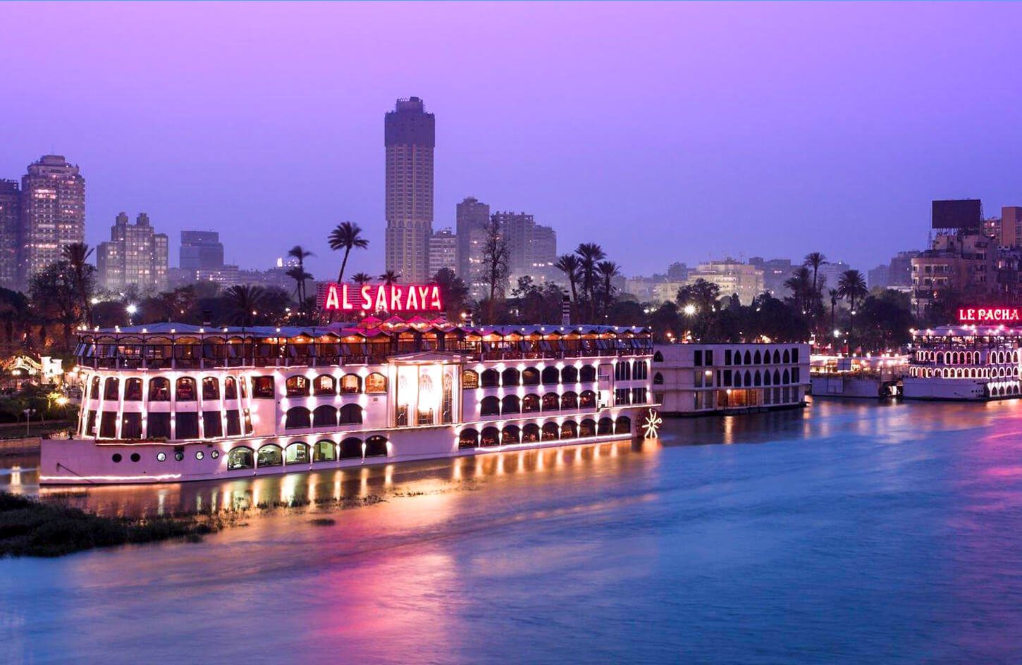 Vivez une soirée inoubliable au Caire avec la Croisière Dîner sur le Nil et Spectacle. Commencez votre nuit par un transfert confortable vers le Nil, où vous embarquerez à bord d’un bateau de croisière luxueux. Pendant que le bateau navigue, savourez un délicieux dîner buffet composé de plats égyptiens et internationaux. Pendant le repas, laissez-vous envoûter par l’atmosphère magique du Nil, avec la silhouette illuminée du Caire en toile de fond. Après le dîner, profitez d’un spectacle oriental captivant comprenant musique traditionnelle, danse du ventre et performances folkloriques, reflétant la richesse du patrimoine culturel égyptien. Détendez-vous et admirez le spectacle en direct tandis que les lumières du Caire se reflètent sur le fleuve. Cette soirée allie détente, culture et vues spectaculaires, idéale pour découvrir la vie nocturne animée du Caire tout en naviguant sur le Nil historique.
